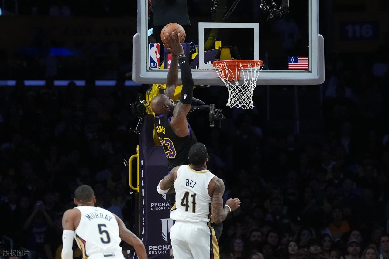 末节初端,湖人这边进攻不顺,被鹈鹕抓住机会一举领先到了8分,锡安反击上篮2+1打成,湖人暂停。暂停以后,湖人这边海斯先扣了,里夫斯进三分,老詹两罚不中以后,东契奇小抛投得分,湖人回敬一波12-0的小高潮。鹈鹕暂停,回到比赛,老詹空接,锡安篮下反篮止血,斯玛特关键三分命中领先到了7分,东契奇单挑墨菲三分还有杀死比赛。